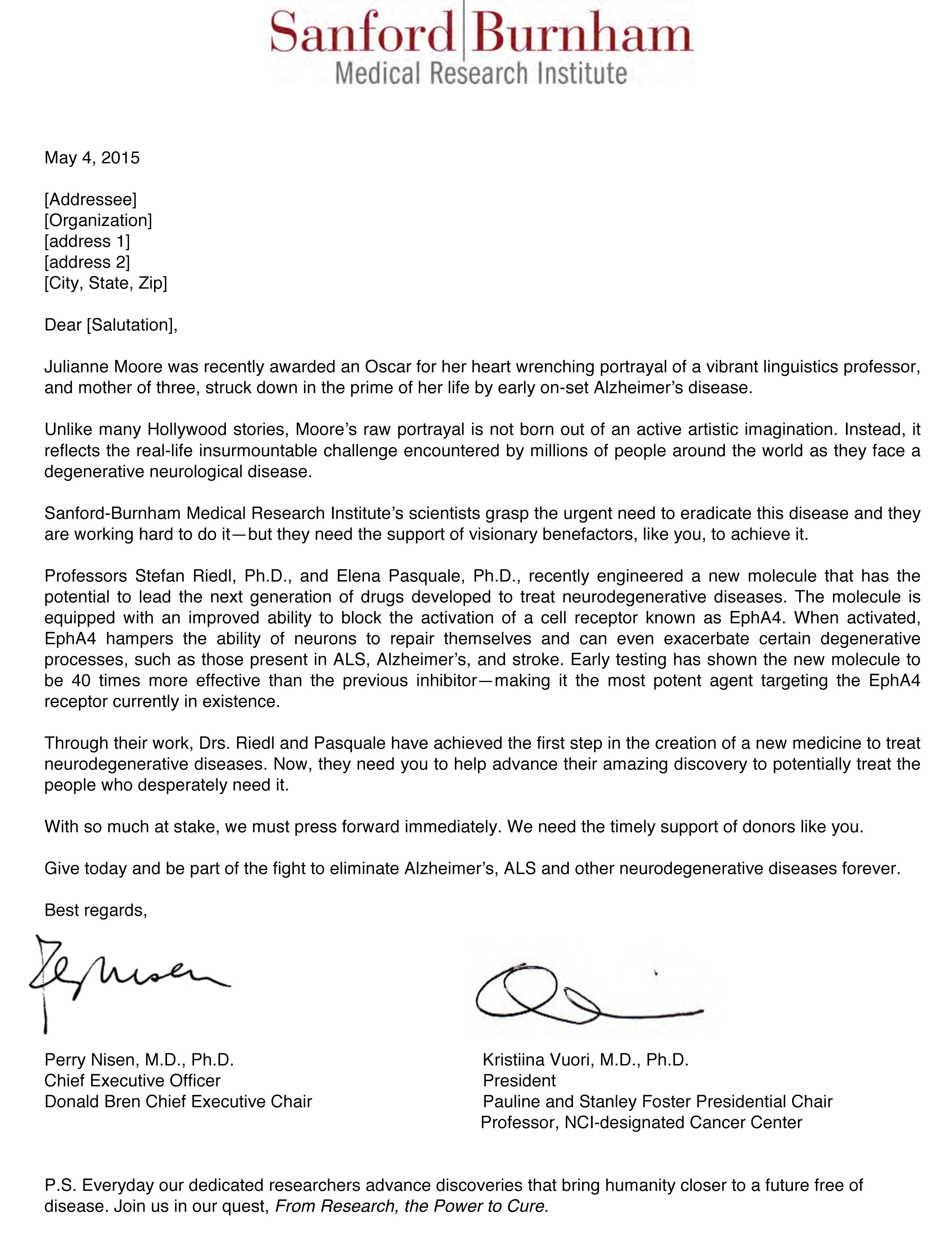Appeal Letter (Sample Direct Mail) This a direct mail appeal letter for the spring 2015 appeal cycle. Related