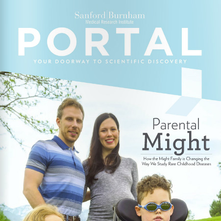 Parental Might is the Summer 2014 issue of Portal. It focuses on the incredible story of the Might family and how SBMRI’s Dr. Hudson Freeze was able to help identify the previously unknown genetic mutation at the root of their child’s mysterious illness. This story was later explored in The New Yorker article “One of Kind: What do you do if your child has a condition that is new to science?” by Seth Mnookin.